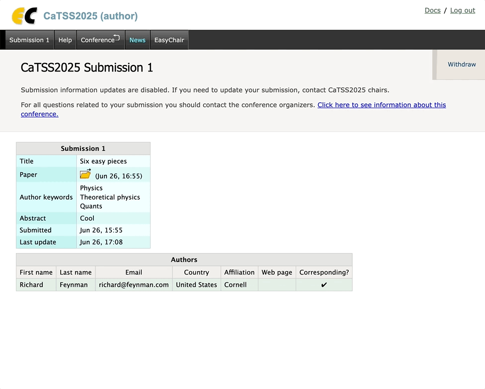 1. Go to the EasyChair section in your main menu (this is always the last section).